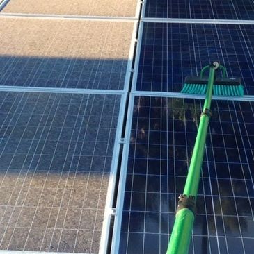 Cleaning solar panels correctly requires a water fed pole specialized brush and de ionized water.